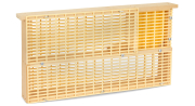 Wooden frame with plastic Queen Excluders on both sides for caging the queen to keep the colony brood-free. It is used either in the summer after the second Honey Harvest or in the fall/winter, when the cluster of bees can sit around the queen due to the slope. The wood thickness is only 10 mm to prevent wild building