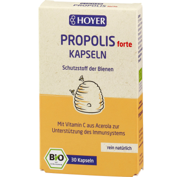 Die Hoyer Propolis forte Kapseln kombinieren hochwertiges Propolisextrakt mit natürlichem Vitamin C aus Acerola – ideal zur Unterstützung einer normalen Immunfunktion. Propolis, auch bekannt als „Bienenkittharz“, ist ein wertvoller Naturstoff, den Bienen nutzen, um ihren Bienenstock vor äußeren Einflüssen zu schützen. Dieses traditionsreiche Schutzharz entsteht durch die Mischung aus Baumharzen, Wachs und Drüsensekreten und wird seit der Antike geschätzt. Jede Kapsel beinhaltet 53 % Propolisextrakt was einer Menge von 200 mg entspricht, ergänzt durch 12 mg natürliches Vitamin C, das einen wichtigen Beitrag zu einem normalen Immunsystem leistet. Eine Kapsel täglich – oder zwei bei erhöhtem Bedarf – reichen bereits aus, um den Körper zuverlässig zu versorgen. Der Inhalt kann auch einfach aus der Kapsel entnommen und in Joghurt, Müsli oder Getränken eingerührt werden Die Hoyer Propolis forte Kapseln stammen aus streng kontrollierten Imkereien und sind frei von künstlichen Aromen, Farb- oder Süßstoffen. Sie sind.
