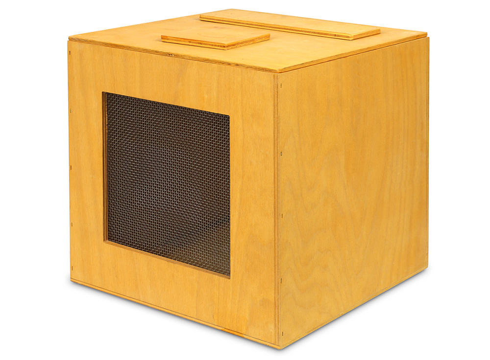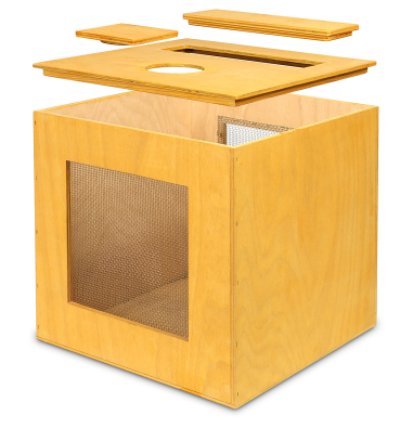 with two-sided ventilation grille, removable lid with round bunghole opening and a square opening suitable for insertion funnels Art. 7437 and 7450. size: 34 x 34 x 34 cm