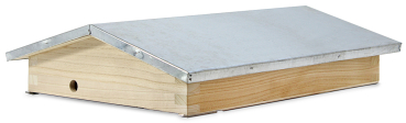 Solid and knot-free wood. With galvanized sheet metal cover and all-round roof overhang. Special feature: The sheet metal cover is made in one piece and is not cut through by a central seam. External dimensions 47 x 26 cm, height 13 cm, weight approx. 4 kg