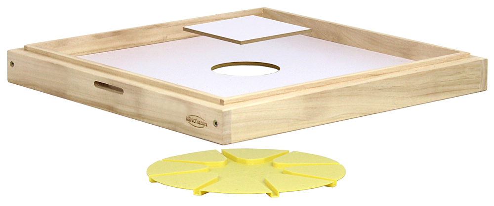 with entrance hole and lockable bunghole. By using the supplied Bee Escapes, the false bottom can also be used as a honey removal tray. In Special Offers, as 2nd choice