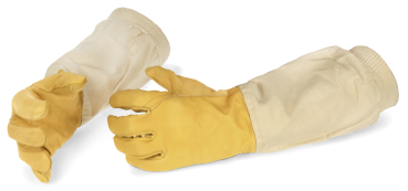 made of soft, natural cowhide nappa leather, with long fabric cuff and waistband