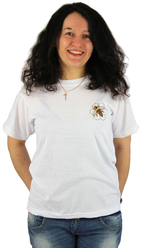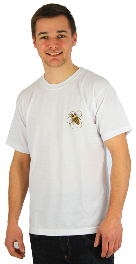 Made from 100% pure cotton in 180 g quality. White with round neck and bee print