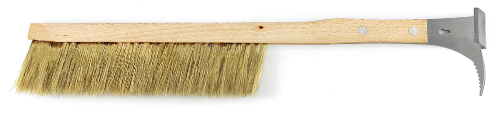 mit hellen 5 cm langen Naturborsten, stabilem Holzgriff, durchgehendem Borstenkamm, integriertem Edelstahl Stockmeißel und Wabenheber, scharf geschliffen