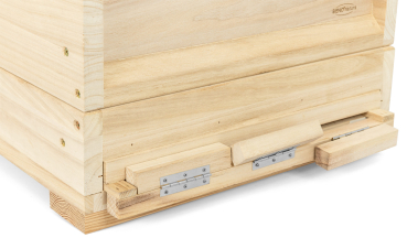 Thanks to the practical folding function, the Entrance can be opened and closed quickly without removing the wedge and offers an additional approach of approx. 4 cm when open. This allows you to react flexibly depending on the weather and colony strength - ideal for hibernation and springtime.