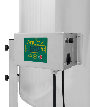 • the integrated 230 V / 300 W heating unit with separate digital control element, infinitely adjustable from 30-85°C, keeps the honey liquid