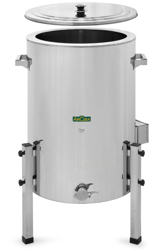 The ApiCera® 140 kg double-wall filler with heating is a simple and efficient solution for honey processing, as the full-surface base sloping down to the squeeze tap enables complete honey extraction without the need for additional accessories or tilting.