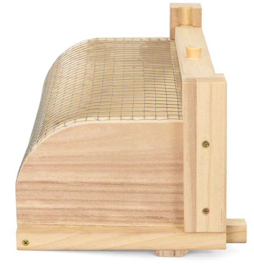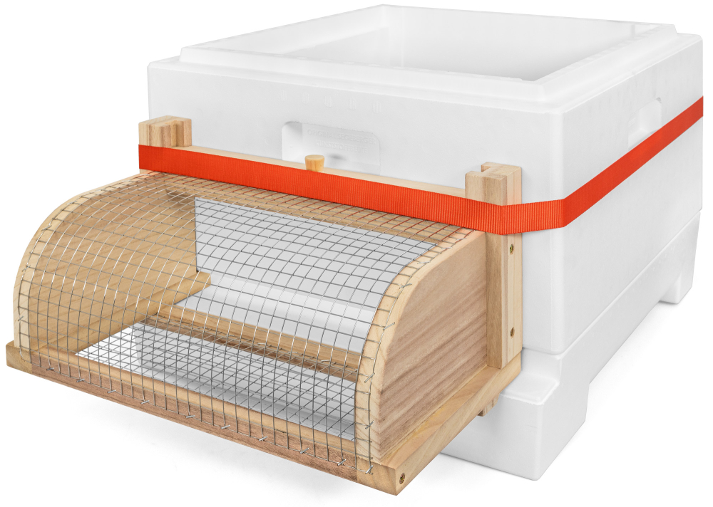 The EWG® Velutina entrance cage "muzzle" for Segeberg Hive flat bottoms is an important accessory for hives when it comes to protecting bee colonies from the Vespa Velutina, the Asian hornet. The close-meshed wire with openings measuring 12 x 12 mm prevents hornets from flying directly into the Entrance of the beehive and interrupts the attack. Bees can fly freely and unhindered through the wire. It can be attached, for example, with a tensioning strap (not included) around the cheeks and the Boxes.