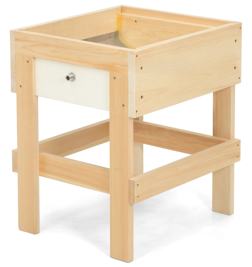 The use of steam gently removes the wax from the frames. The stainless steel of the drip tray provides reliable protection against corrosion and heat. The melted Beeswax runs directly into a containervia the flush aluminum outlet . container. Theresult is clean, reusable wax with minimal effort.