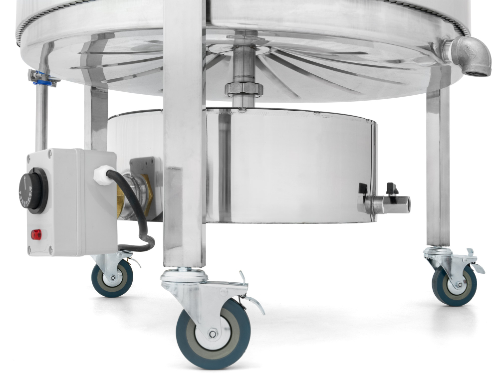The wax melter is equipped with a loose stainless steel lid including knob and has two rubberized handles for safe working. A filler neck halfway up the tank makes it easy to fill the steam heating unit - without tipping over or complicated handling. The sloping base with floor-level outlet and removable brass spout ensures optimum drainage for wax and water. The Steam Wax Extractor stands on three sturdy legs with hard rubber castors. Each castor can be secured with a locking brake - maximum flexibility and safety when working.